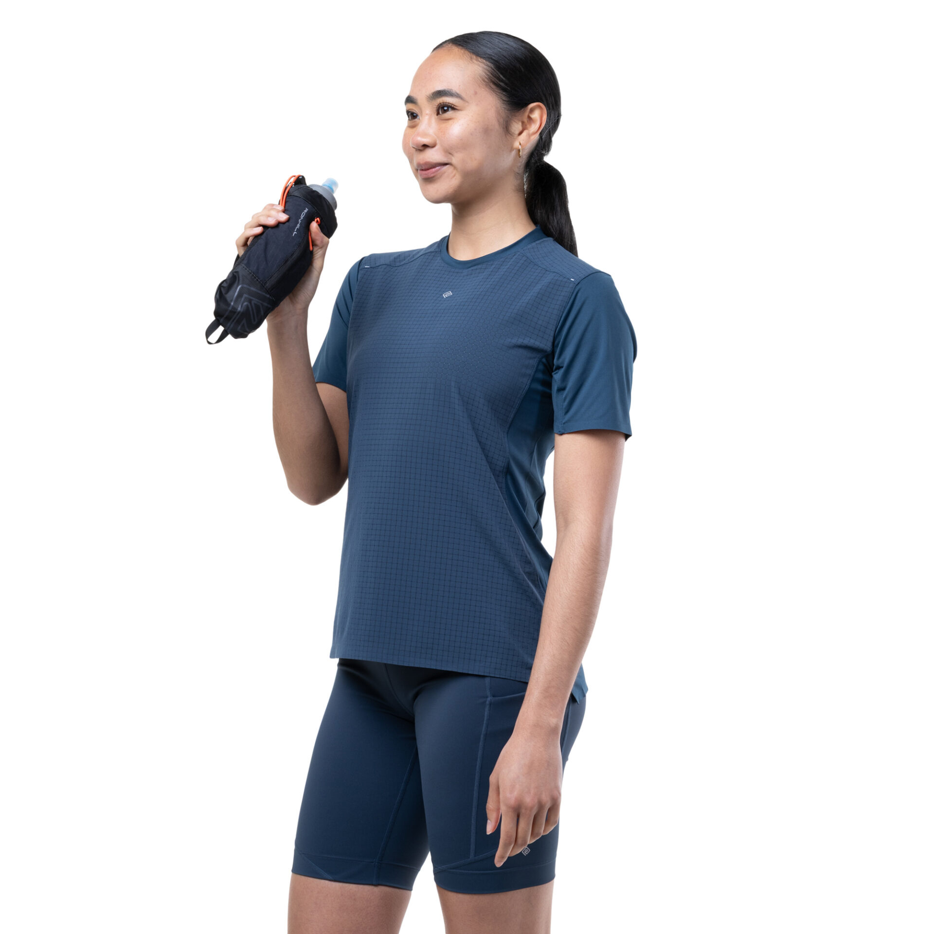 Soft touch 1 secure zip pocket Adjustable handstrap Adjustable bottle drawcord Ergonomic fit